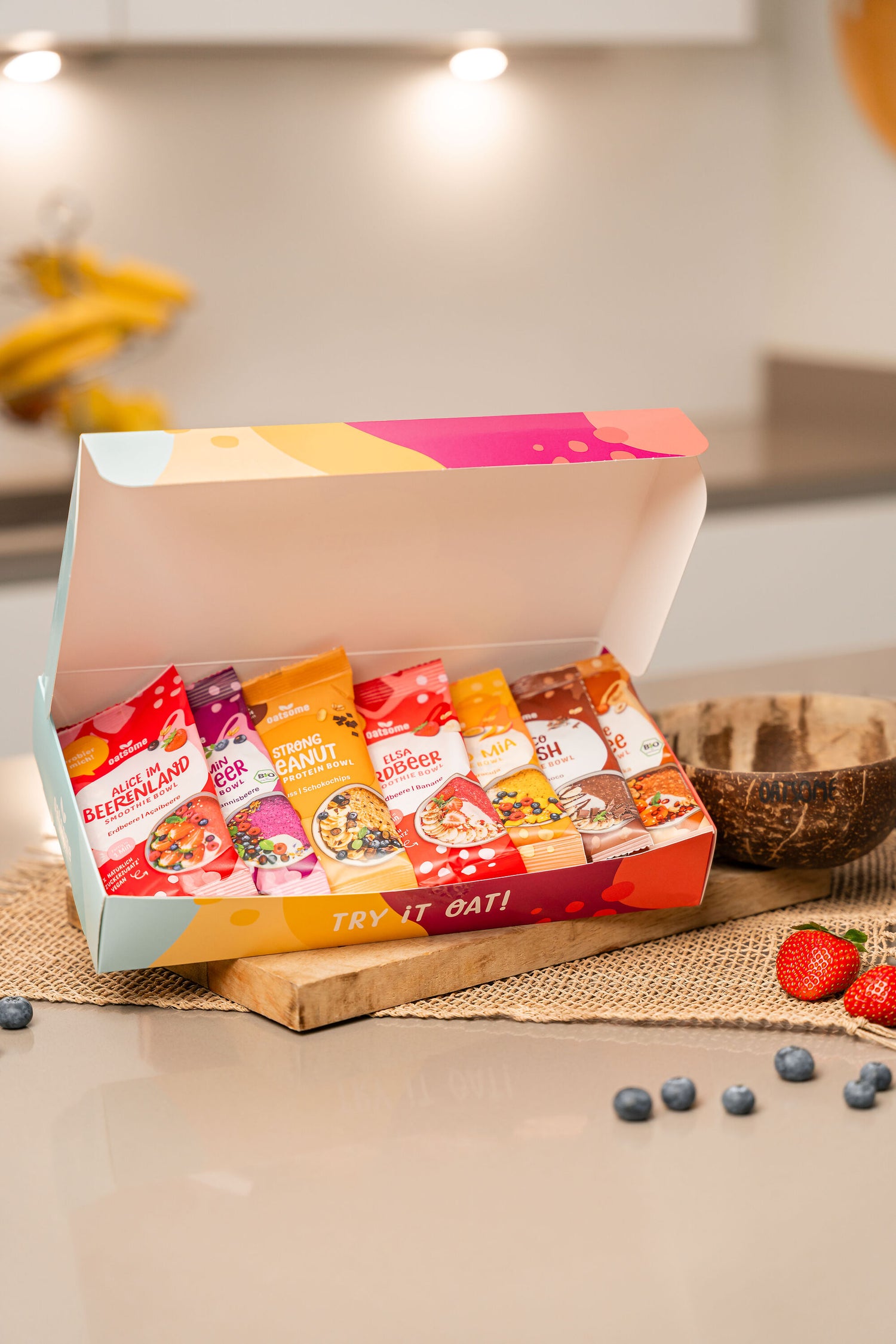 Genau dafür gibt es das Probierpaket: 15 Portionen, 8 verschiedene Sorten, perfekte Probiergröße.