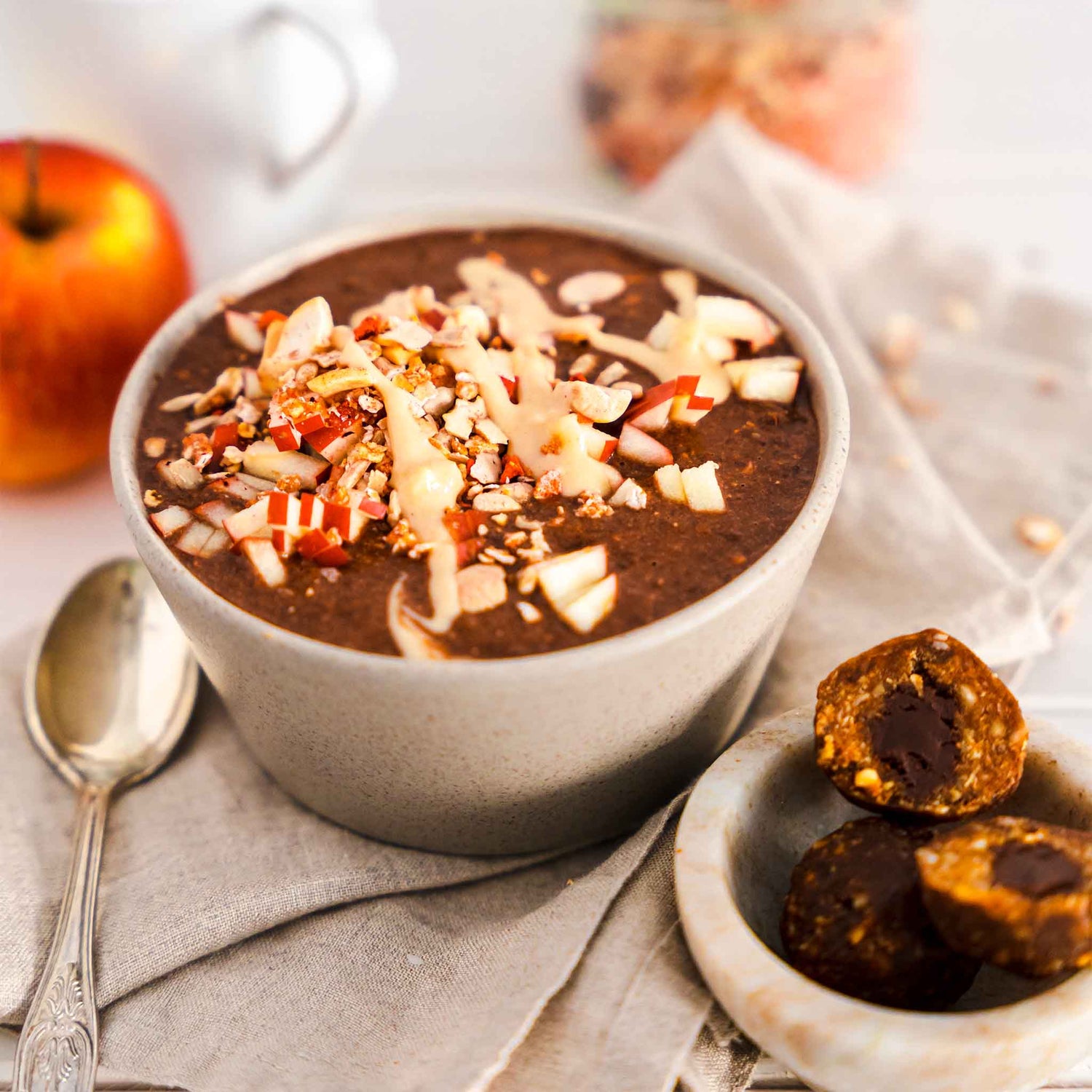 Die enthaltenen Cashews und Erdmandeln sind großartige Energielieferanten für deinen Körper. Darüber hinaus versorgen sie dich auch noch mit Eiweiß und wertvollen Fetten, so kann dich den Tag über nichts mehr aufhalten! Zusammen mit dem gebackenen Hafer Crunch, verleihen sie deiner Bowl die Extraportion Biss.