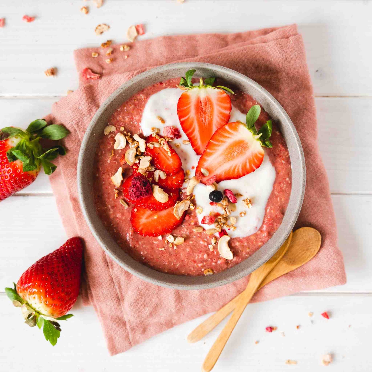 Elsa Erdbeer sorgt mit ihrer Kombination aus fruchtigen Erdbeeren und herrlich süßer Banane für absolute Wohlfühl-Vibes am Frühstückstisch. Dazu verleihen die enthaltenen Schmelzflocken dieser Smoothie Bowl eine besondere Cremigkeit - einfach Strawberry good!