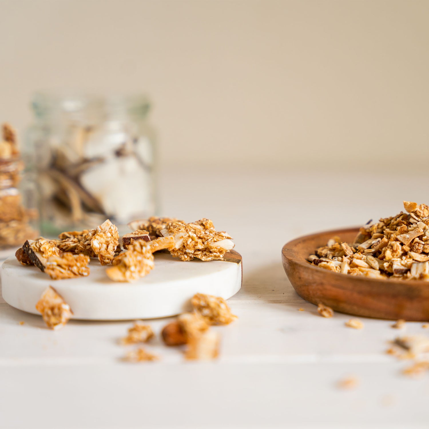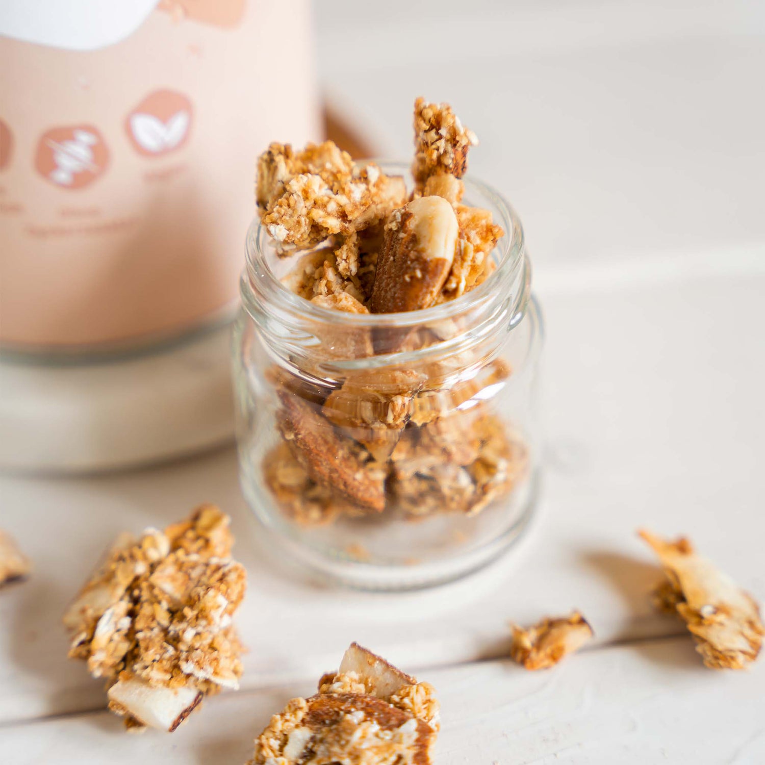 Die enthaltene Mandel ist eine wahre Beauty-Queen. Neben ihren wertvollen Fetten sowie ihrem hohen Eiweiß- und Ballaststoffgehalt, enthalten Mandeln jede Menge Antioxidantien in Form von Vitamin E, das die Zellen unseres Körpers schützen kann.In Kombination mit Kokosnuss versüßt Hakuna Makokos jedes Frühstück.